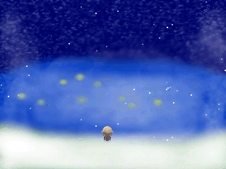 The yellow butterfly takes the player to a small lake with some fireflies. Until you interact with it for the first time, it’s only visible while the Bug effect is equipped. If one kills the piano player in the book (White Butterfly) and then returns to this area from Fountain World, there will most likely be no more fireflies in this area and the music will change to something much more somber. It also may snow in this area.