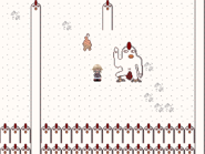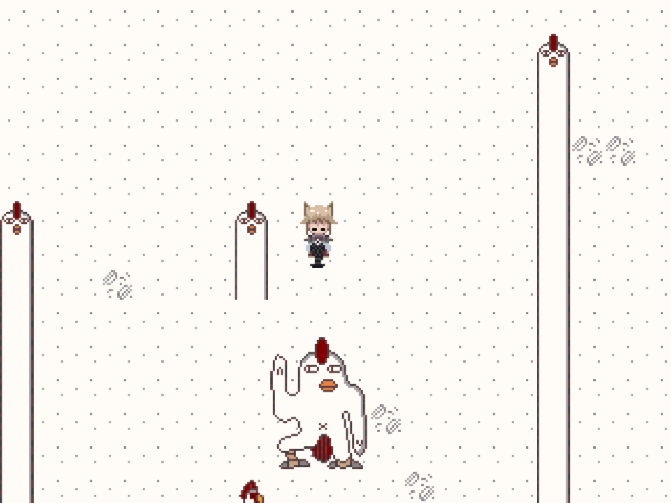 The Chicken World is a closed-off area surrounded by chicken pillars of varying sizes, and as the name suggests, it is populated by chickens as well as large, weird-looking ones.