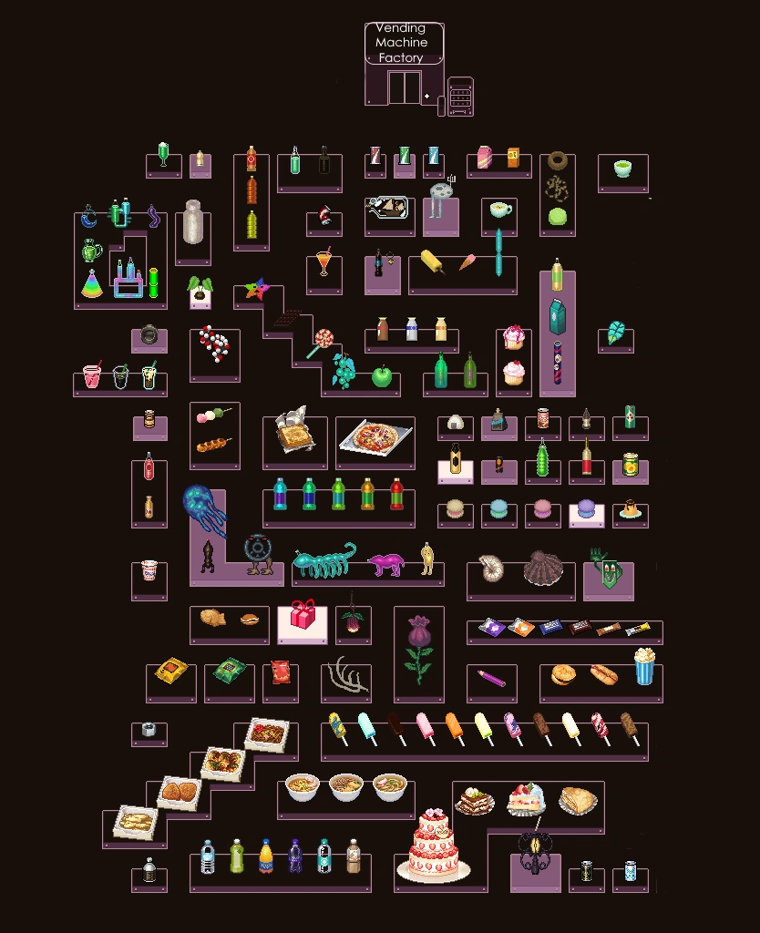 Nexus ā Garden World ā Snowy Apartments ā Underground Garage ā Vending Machine Factory ā Snack Gallery
