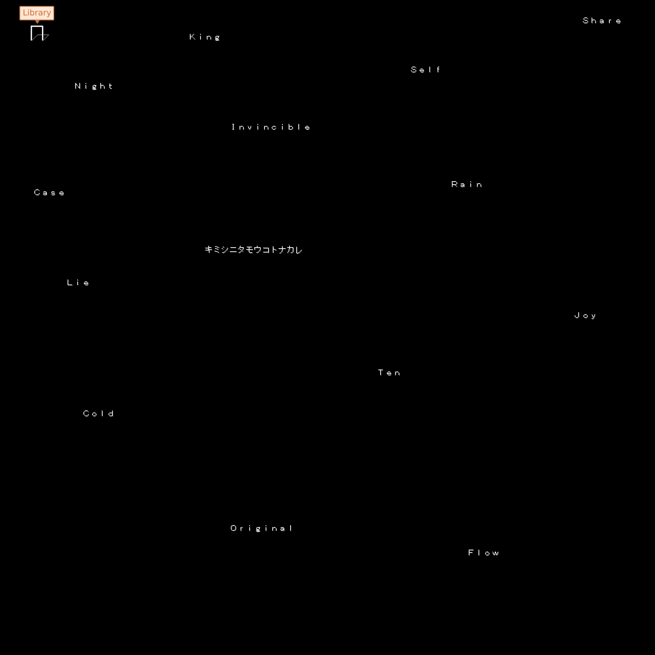 This is a sizeable area with only a black background and some words in white font around. There is only one door, which goes to and from the Library. When walking around, Urotsuki will leave behind a small path of dot-shaped footprints that vanish shortly after appearing. The area will occasionally go dim, with an ASCII train driving to the left of the screen, and using the Crossing effect will increase its chance of showing up.
