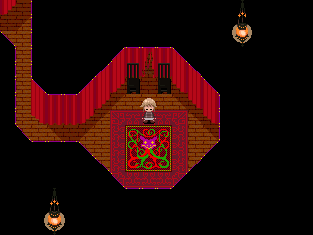 The Forest Carnival (サーカス団, Sākasu dan, Circus Troupe) is a circus-themed area accessible from the Dark Forest. This area features several hallways that branch off into different rooms of a large carnival tent, including a ladder that leads you to the area where the High Priestess Event can be seen.